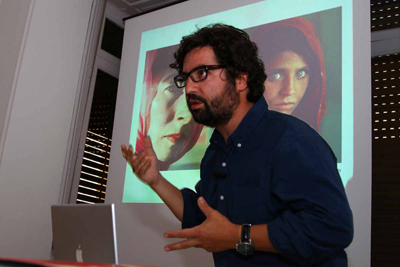 Bueno. Pues a punto ya de dar el brinco al videoarte realizado con iphone, este fotógrafo y repensador de la fotografía también ha decidido dar otro salto adelante en su aspecto, dotándose de una imagen más a la moda, más vintage, más poppy; en definitiva, más chachi-piruli. Y si no comprobad por vosotros mismos. Mirad como se parece a uno de los iconos culturales de nuestro tiempo, otro que marca tendencias: el humorista Joaquín Reyes. ¿A que sí?